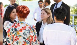 Durante el acto, la Directora Ejecutiva del Fondo MARENA, Judith Valdez, selló el compromiso del cumplimiento de las acciones e hizo entrega de brazaletes Eco Mujer a las madrinas seleccionadas para el proyecto, Tanja Lieuw, Gerente Financiera de Conservación de CBF; Nathalie Flores, Directora de Cambio Climático del Ministerio de Medio Ambiente y Recursos Naturales y Josefa Castillo, Superintendente de Seguros.